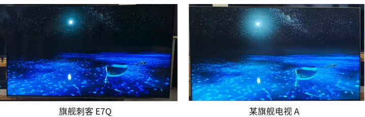 比如在观看月亮画面时,旧电视机呈现出的画面中,月亮周边会有一圈很大的光晕,但用海信E7Q观看就不会出现这种情况,月亮主体会更明显。