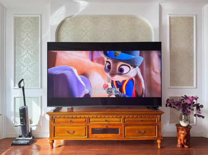 我家这款海信新电视尺寸选的是85寸,5200nits 的超高亮度让画面亮的上去,而黑曜屏本身的特性则让画面黑的地方黑的通透,这一亮一暗的配合让画面更鲜明立体。